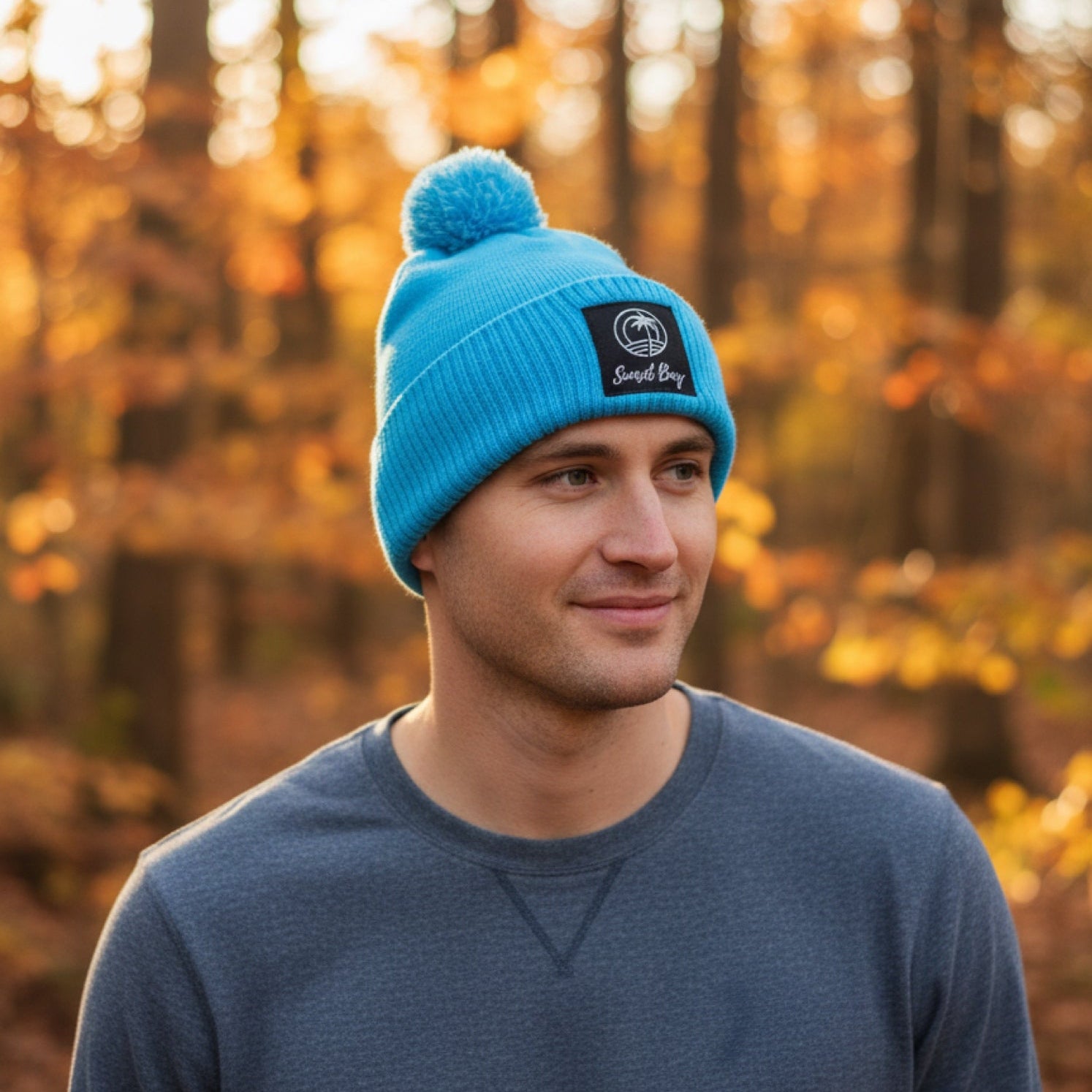 Add colour to cold days with the Sunset Bay Bobble Hat in light blue. Wear it on early starts, outdoor adventures and laid-back days when the temperature drops.